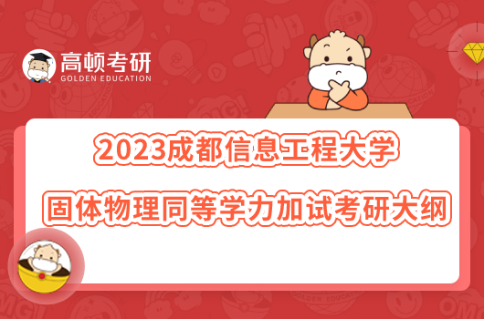 2023-05-15 15:052023成都信息工程大学同等学力加试考研大纲已发布!为了让以同等学力报考成都信息工程大学汉语国际教育专硕的同学们对于考试大纲能有所了解,高顿小编 ...
