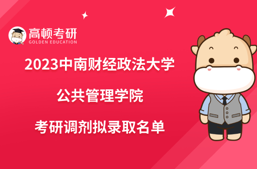 2023-05-24 09:052023中南财经政法大学公共管理学院考研调剂拟录取名单发布!下面是高顿小编整理的有关2023中南财经政法大学公共管理学院考研调剂拟录取名单的详细内容 ...