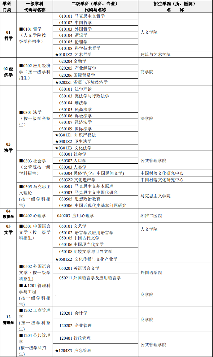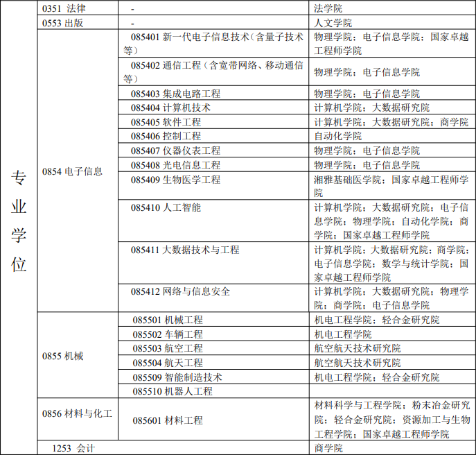 中南大学2026年在哲学、经济学、法学、教育学、文学、管理学等学科门类招收学术学位博士研究生;在法律、出版、电子信息(人工智能领域)、会计、工程类等专业学位类别招收专业学位博士研究生。
