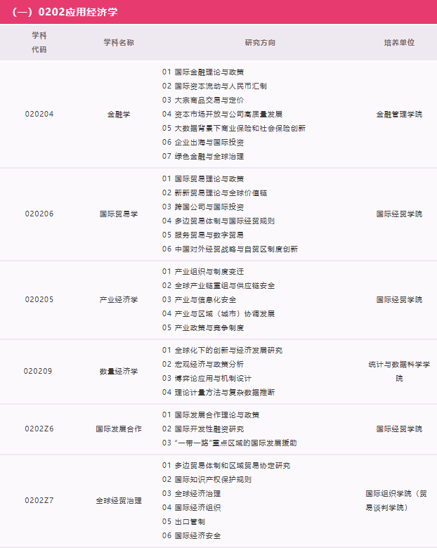 2026年上海对外经贸大学应用经济学和统计学2个博士学位一级学科对外招生。具体招生专业及研究方向如下: