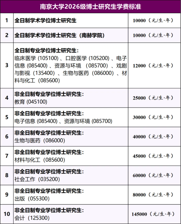 南京大学2026年博士研究生按报考来源分为直接攻博、硕博连读及普通招考,招生以“按需招生、全面衡量、择优录取、宁缺毋滥”为原则,实行“申请-考核制”。有全日制和非全日制(即“在职博士”)两种学习方式,非全在职博士为周末/集中授课,工作学习两不耽误。