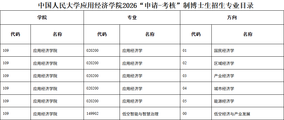 中国人民大学应用经济学院2026年博士研究生招生实行“申请-考核”制,分为全日制和非全日制(“英才培育计划”)两种学习方式。“英才培育计划”非全在职博士预计于2026年4月左右开展,原则上安排周末上课,适当条件时安排集中授课或集中实践参访活动。