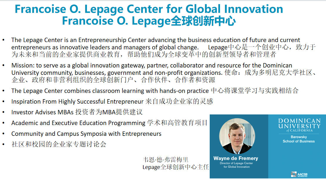 美国加州多明尼克大学MBA项目便是典型例证。该校通过两大特色中心,构建了学员与全球顶尖资源的对接通道: