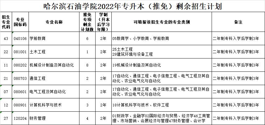 2022年哈尔滨石油学院专升本(推免)录取工作正紧张有序开展。两轮双选结束后,尚有部分剩余计划,未被录取的符合推免政策的考生可向该校报名。