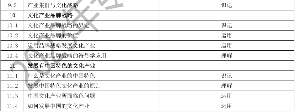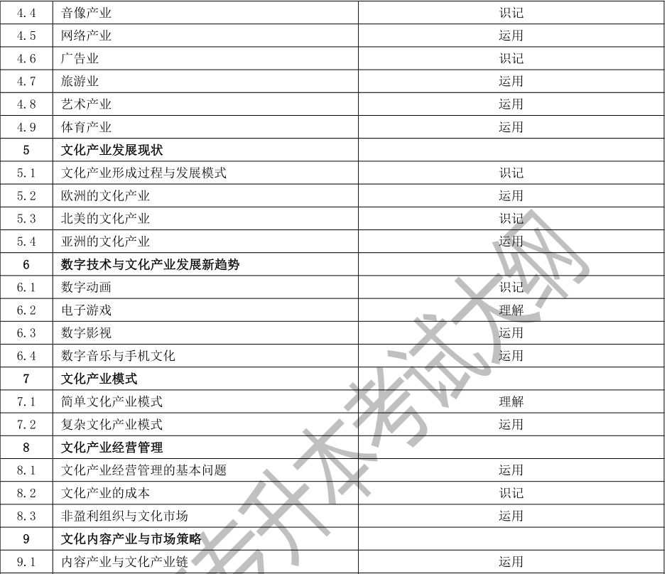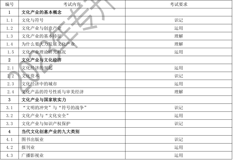 要求考生掌握文化产业概论基本概念、原理的基础上,能熟练使用理论知识在某一个具体的文化产业上进行应用操作;掌握文化产业原理、方法及步骤,具有文化产业设计以及应用文化产业系统的基本能力。